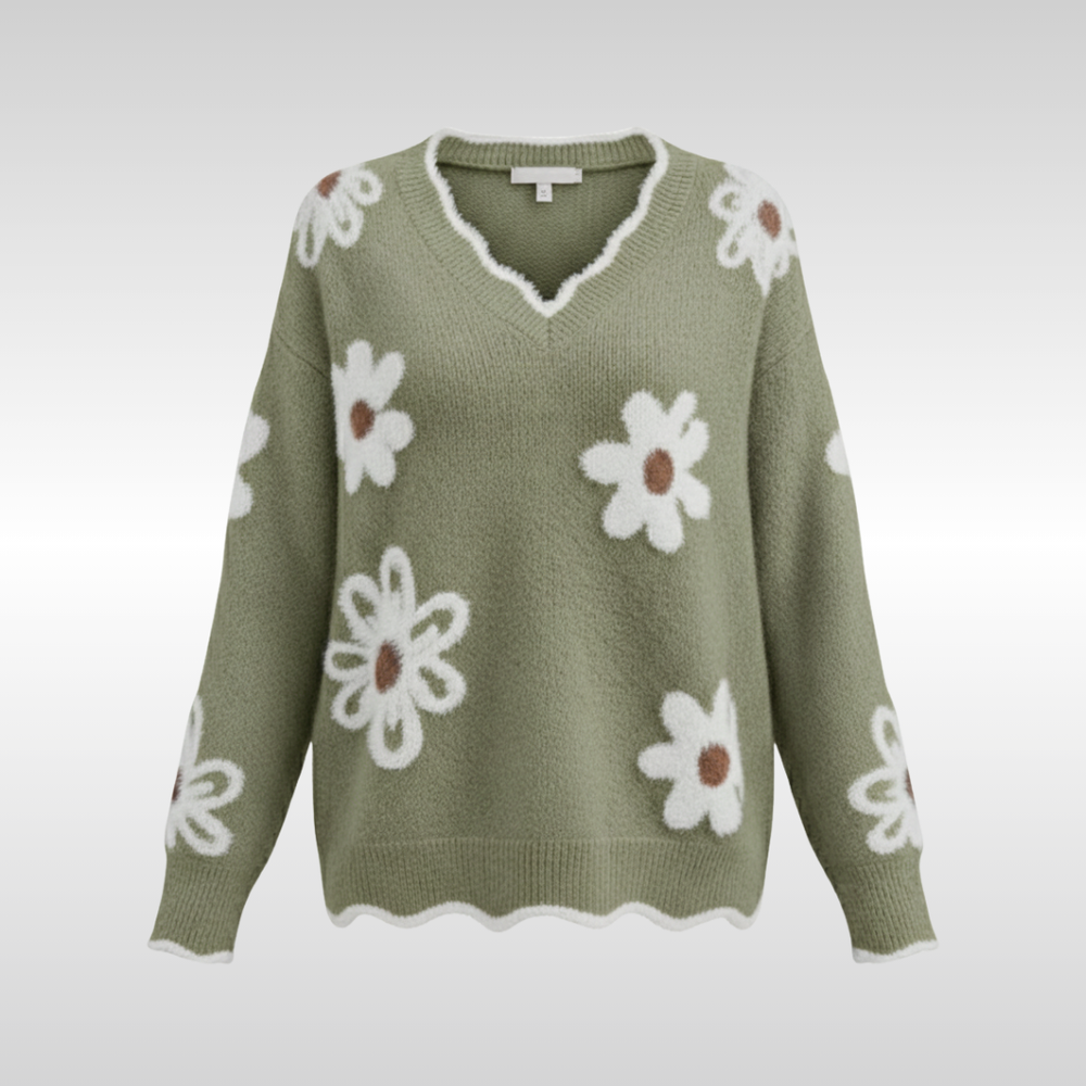 MILA FLORAL V-NECK KNIT SWEATER | SOFT, FEMININE AND FLATTERING